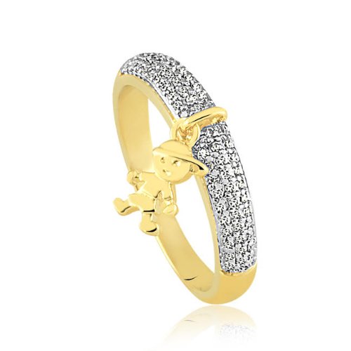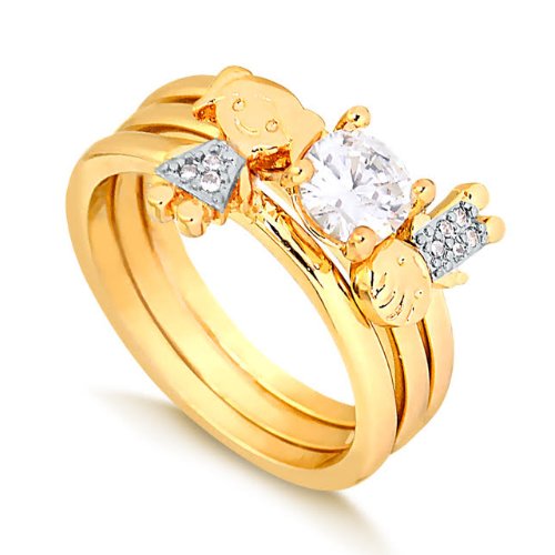Anel Trio com Solitário - Menino e Menina e Pedras Zircônia
