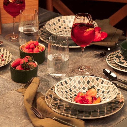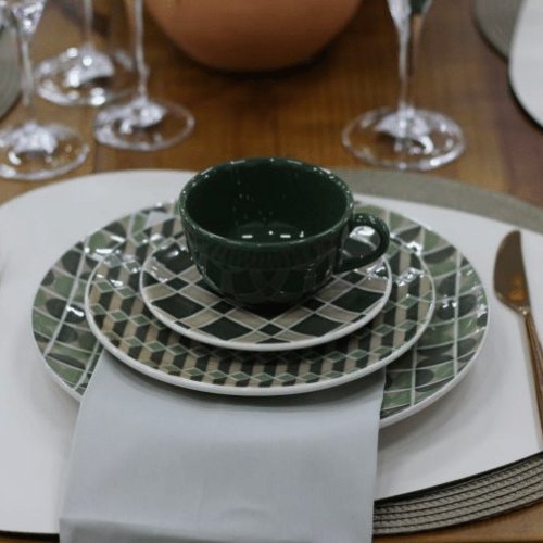 Dinner set with 20 pieces in earthenware, the composition is formed for 4 dinner plates, 4 dessert plates, 4 soup plates, 4 teacups and 4 tea saucers.