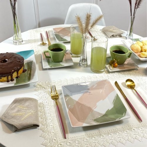 Dinner set with 20 pieces in earthenware, the composition is formed for 4 dinner plates, 4 dessert plates, 4 soup plates, 4 teacups and 4 tea saucers.